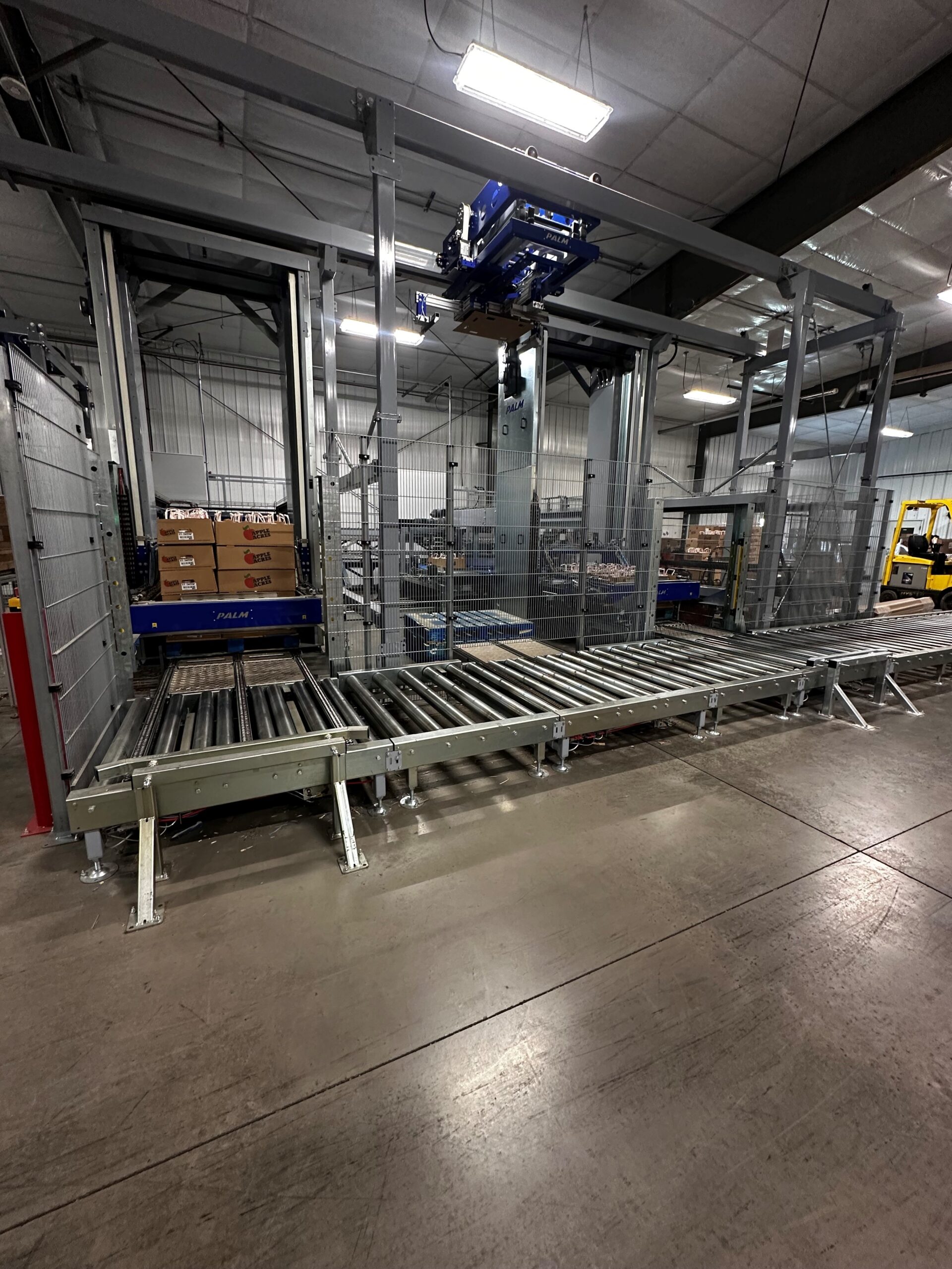 Phase 2 of this multi-phase automation project brought a second fully automated palletizing system online to increase throughput and operational efficiency. The system delivers high-speed, precise pallet formation with consistent stacking patterns, significantly reducing manual handling and labor dependency. With the Phase 2 installation now complete, the customer is well positioned for future growth. The palletizing solution was designed with a multi-phase expansion plan in mind, allowing seamless integration of a third palletizer as production demands continue to increase.